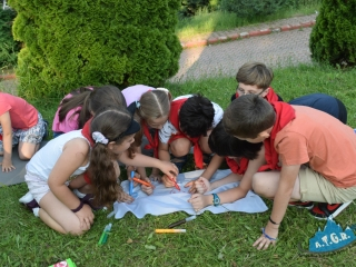 Facem cunoștință cu echipa de ghizi albaștri, ce ne așteaptă nerăbdători și formăm echipele cu care ne vom distra întreaga săptămână. Ne vom alege căpitanul, vom confecţiona un steag care să ne reprezinte și ne vom mobiliza printr-un strigăt de echipă pe care-l vom compune.